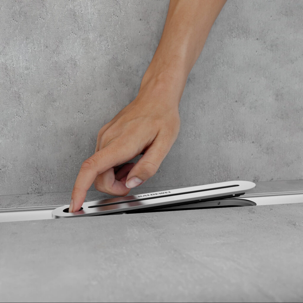 Die im Frühjahr 2023 gelaunchte und seit Herbst 2023 verfügbare Designduschrinne mit einem zum Patent angemeldeten Click’n clean Mechanismus überzeugt nicht nur durch eine einfache Handhabung, sondern auch als ästhetisches Gestaltungselement. Das hat auch die internationale Jury des iF Design beeindruckt, die am Ende mit „voller Punktzahl für Innovation“ urteilte: „Dies ist ein hervorragendes Beispiel für Produktdesign, das die Ästhetik betont und gleichzeitig großartige Funktionalität und Ergonomie bietet“, so das Statement der international besetzten Fachjury aus Branchen- und Designexperten.